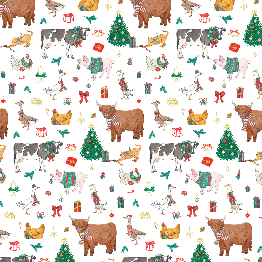 Christmas farm animal pattern design and illustration for Core Home